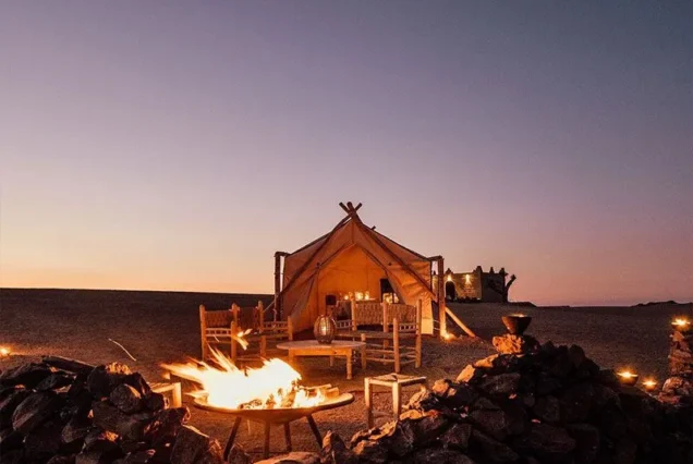 Enjoy a camel ride and witness the beautiful sunset over the desert.
